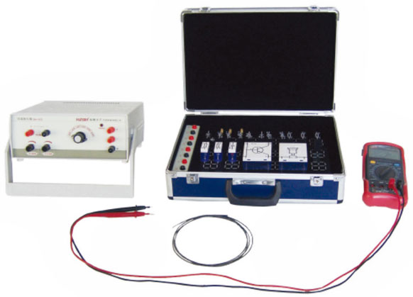 實驗儀由測試實驗暗箱、九孔板插件、實驗元件、電源、數(shù)字萬用表等組成。